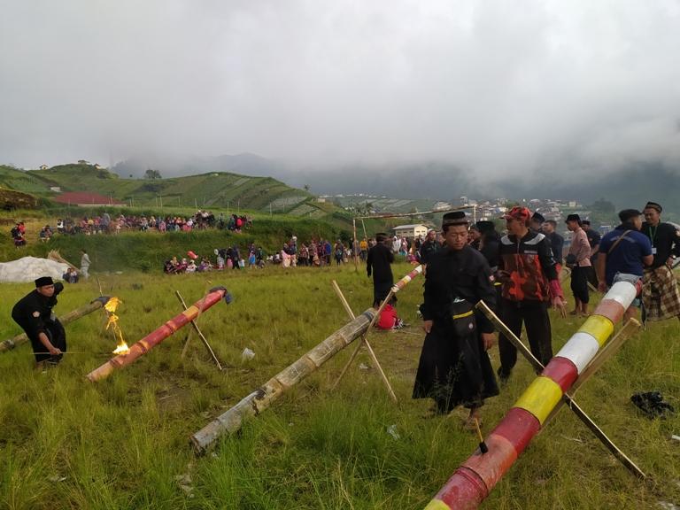 Suara menggelegar dari long bumbung atau meriam bambu saling bersautan di lereng Gunung Lawu.
