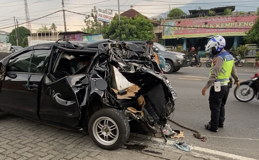 Mobilio hitam ringsek parah di bagian belakang akibat kecelakaan tersebut.