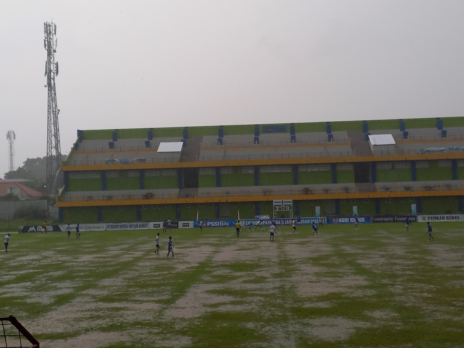 Selain stamina yang kian tergerus ditambah derasnya hujan yang mengakibatkan lapangan tergenang air.