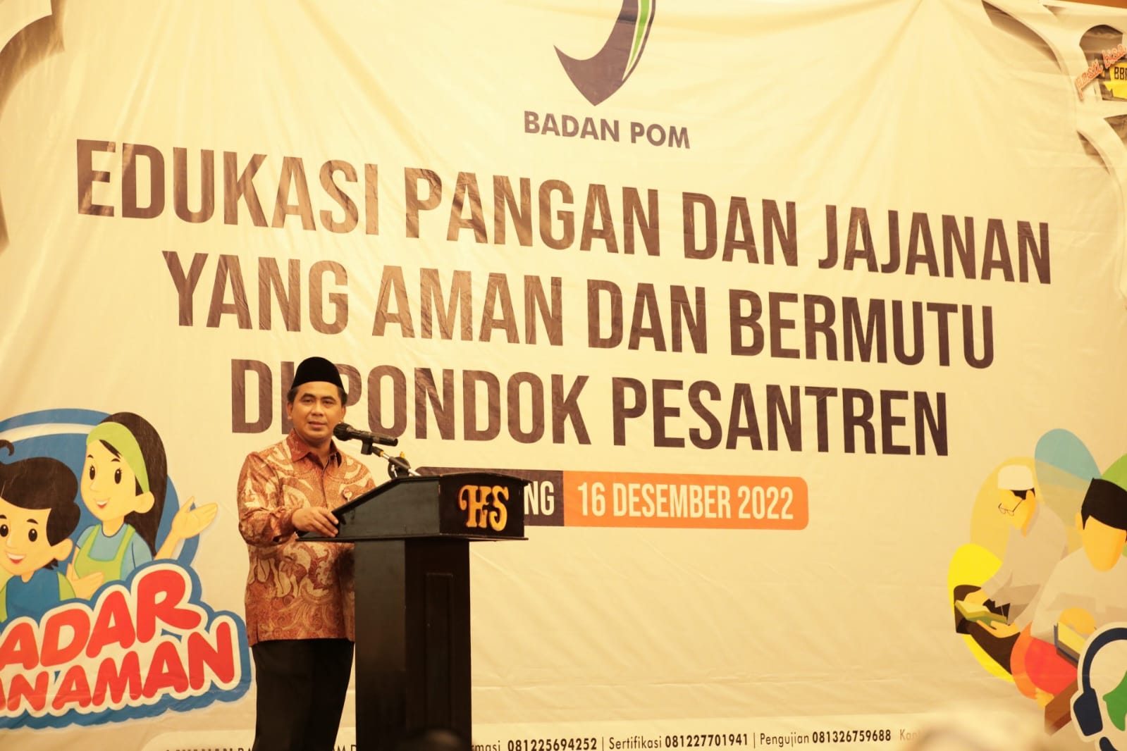 Hal itu disampaikannya saat memberi sambutan acara 'Edukasi Pangan dan Jajanan Aman dan Bermutu di Ponpes' di Hotel Santika, Jumat (16/12/2022).