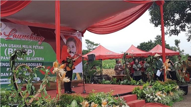 Plt Wali Kota Semarang, Hevearita Gunaryanti Rahayu meluncurkan Badan Usaha Milik Petani (BUMP) Kota Semarang, usai panen raya padi di Tembalang.