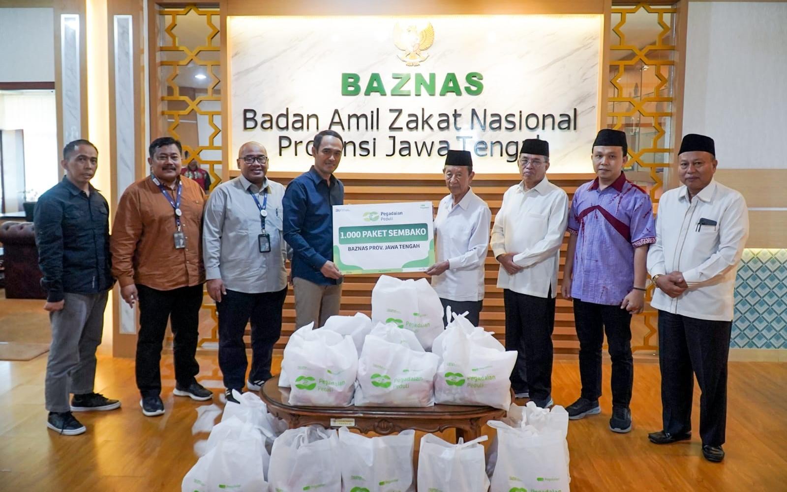 Pegadaian Semarang menyalurkan bantuan 1.000 paket sembako melaui Baznas Jateng. Bantuan ini merupakan bagian dari CSR Pegadaian Semarang.