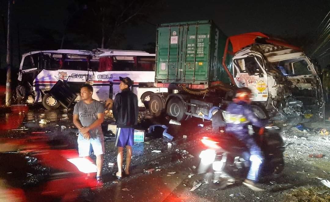 Kecelakaan maut Bus Surya Bali di jalur Pantura Pati, tepatnya di Kecamatan Batang. Hantam dua truk tronton, 6 orang korban meninggal dunia.