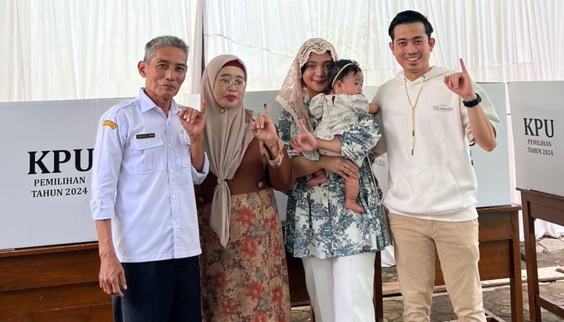 Jadug menyalurkan hak pilihnya di Tempat Pemungutan Suara (TPS) 03, Desa Kaliombo, Kecamatan Pecangaan, ditemani istri dan kedua orangtuanya.