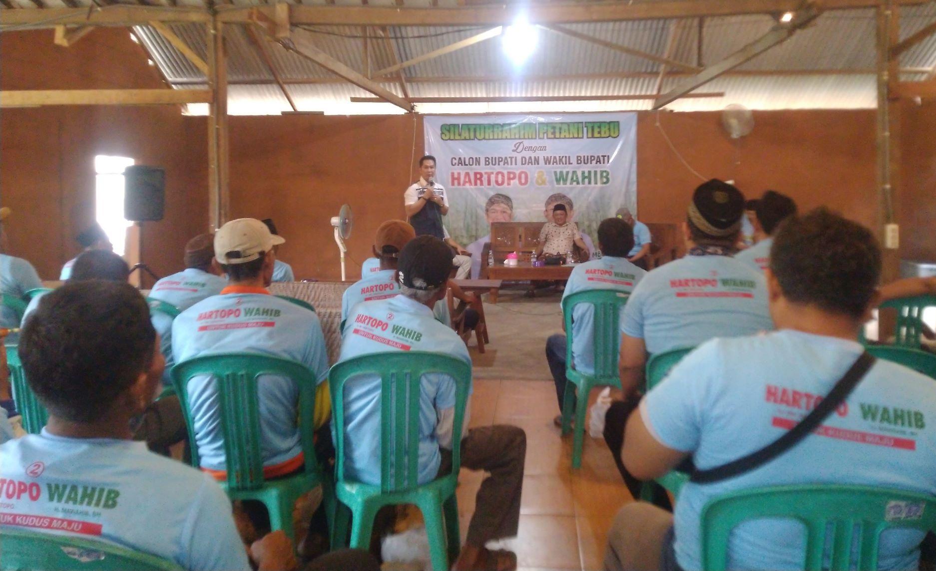 Sejumlah petani tebu di Kudus deklarasi dukung Hartopo-Mawahib di Desa Ngembalrejo, Bae. Petani tebu minta persoalan pupuk hingga KUT dituntaskan.